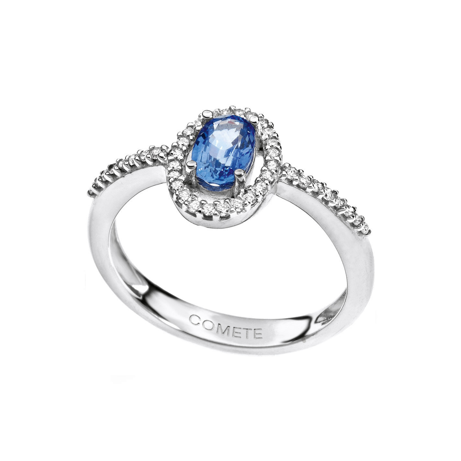 Anello in Oro Bianco con Diamanti 0.20 Ct e Zaffiro Blu 0.60 Ct