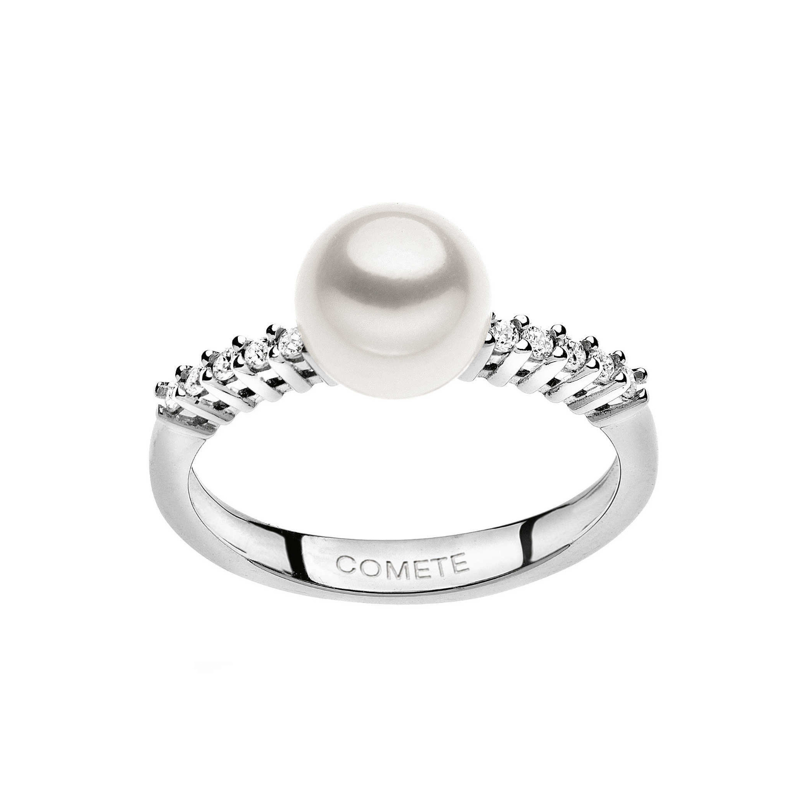 Anello Oro Bianco 18 Kt con Diamanti 0.13 Ct e Perla Coltivata Ø 7/7.5