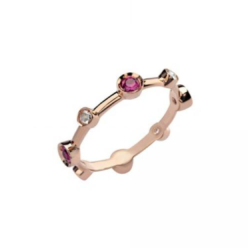 Anello in oro rosa, diamanti brown 0.12 carati e rubini 0,18 carati