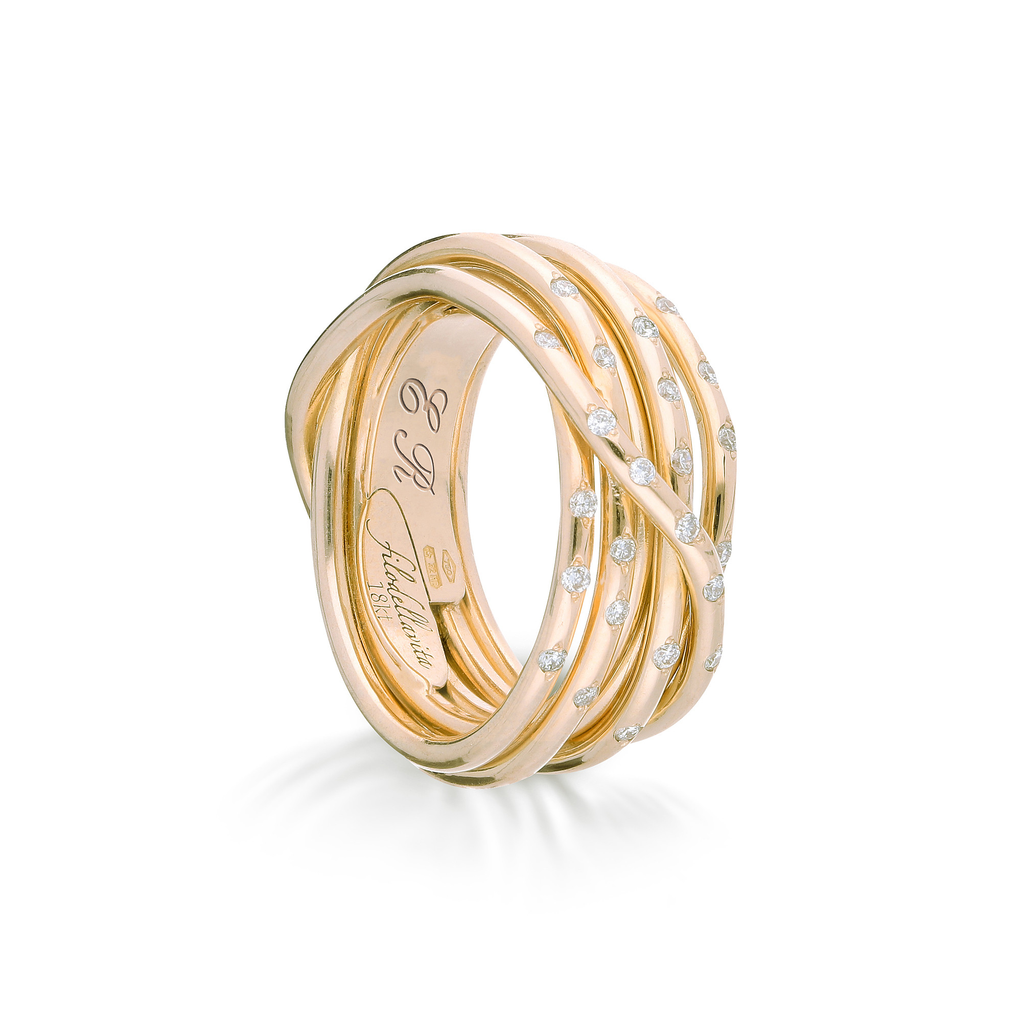 Anello Filodellavita Leda Collection, 7 Fili in Oro Giallo 18 kt e 23 Diamanti Bianchi 0.28ct
