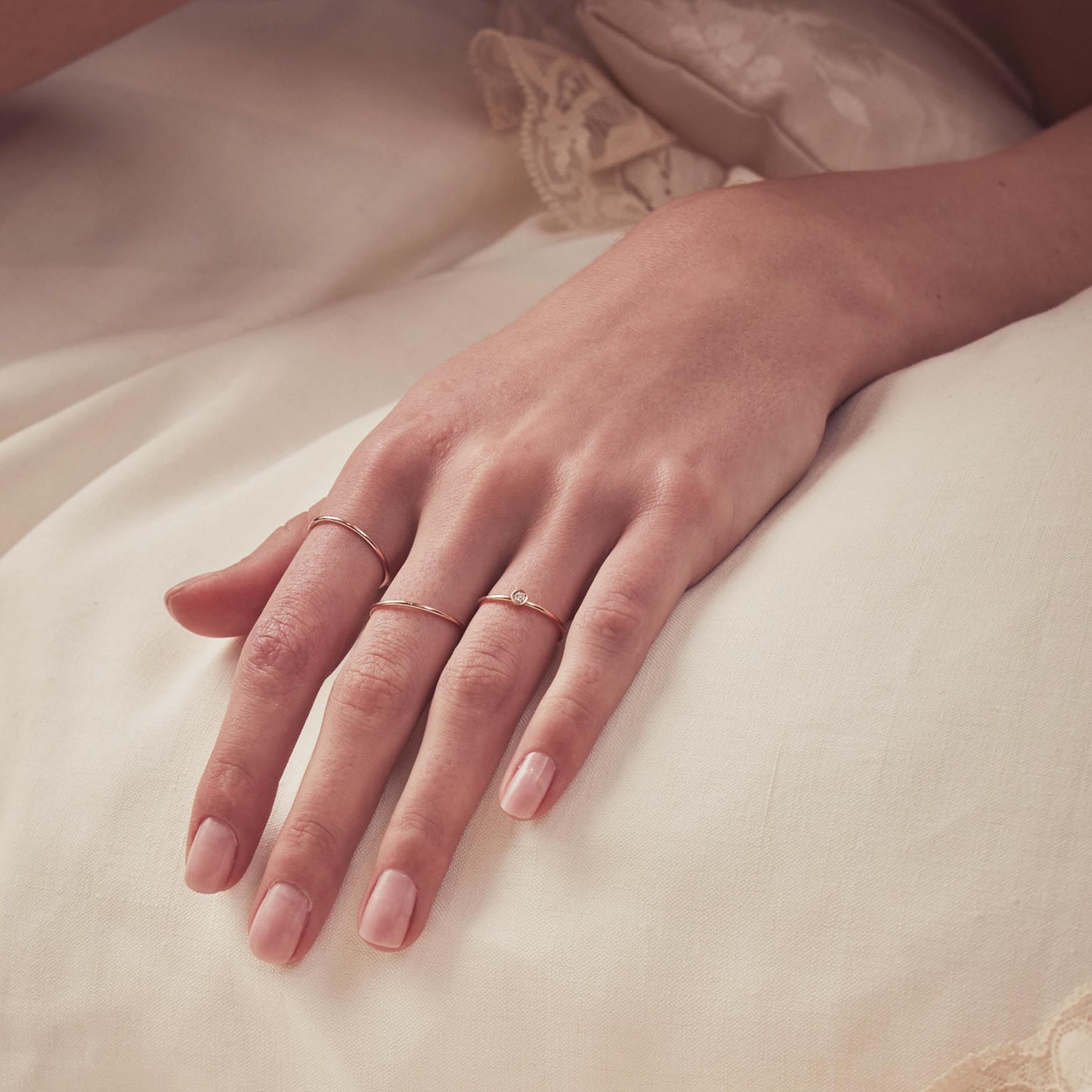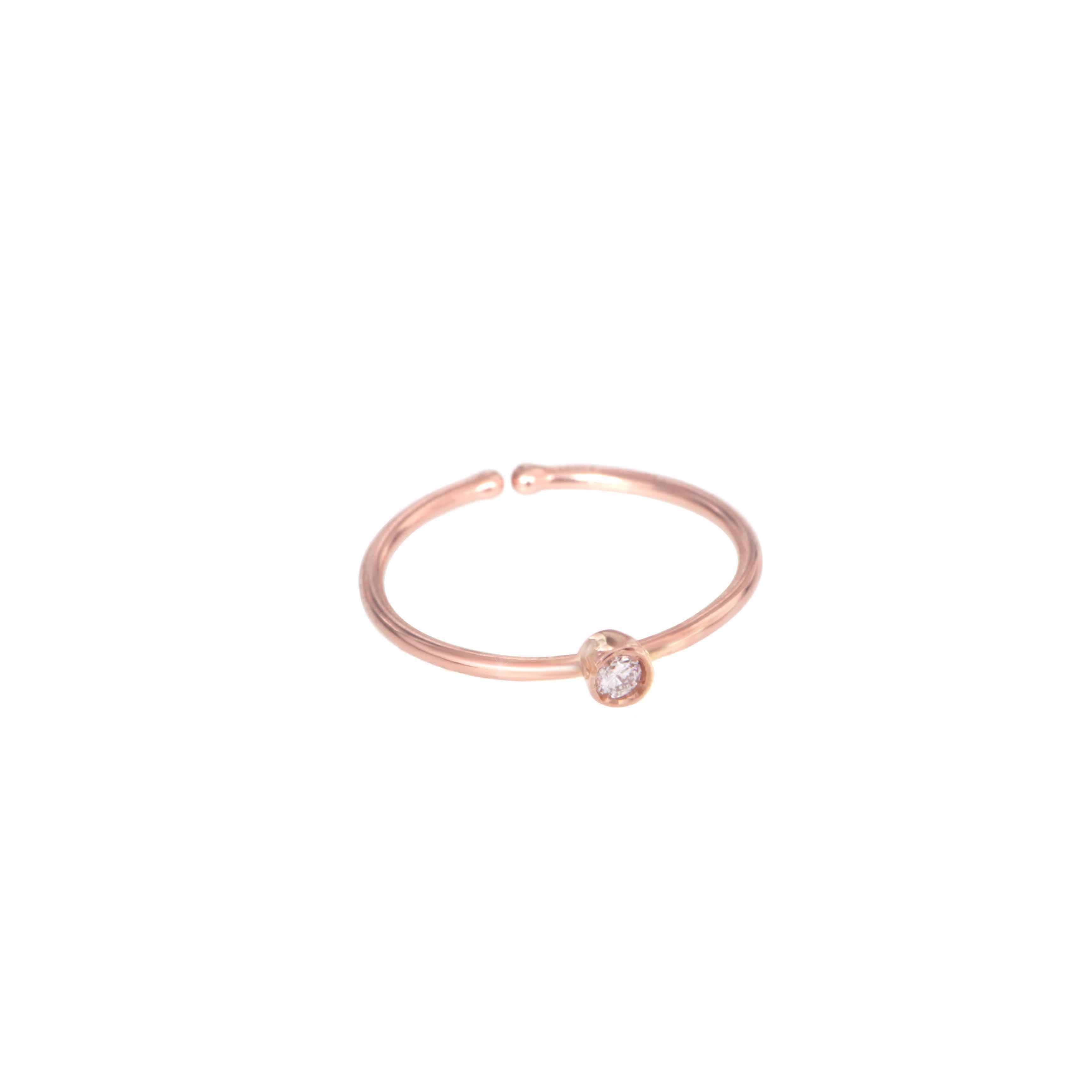Anello a solitario della Collezione Aurum, realizzato interamente in oro rosa 18 carati con punto luce brillante 5 punti incastonato.