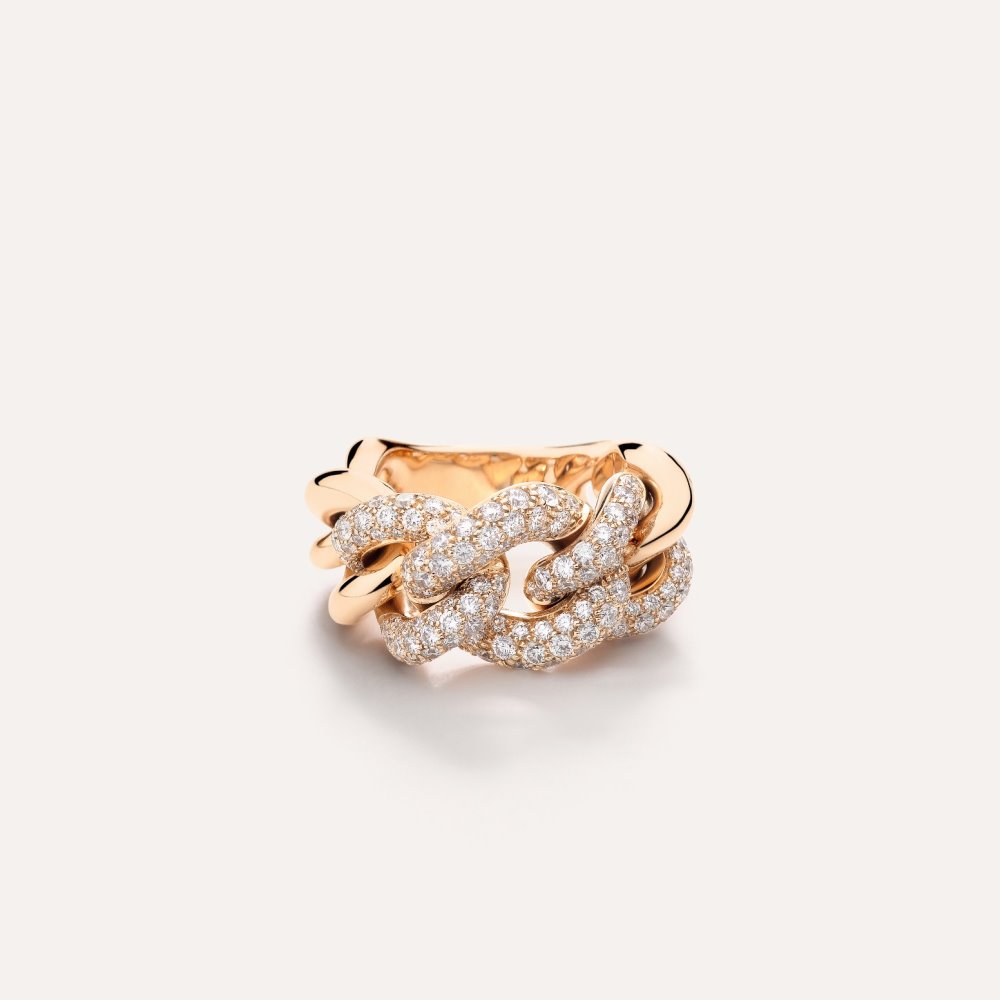 Catene è una delle collezioni diventate sinonimo dello stile Pomellato e si riallaccia direttamente alla ricca tradizione della Maison nella lavorazione a catena.
