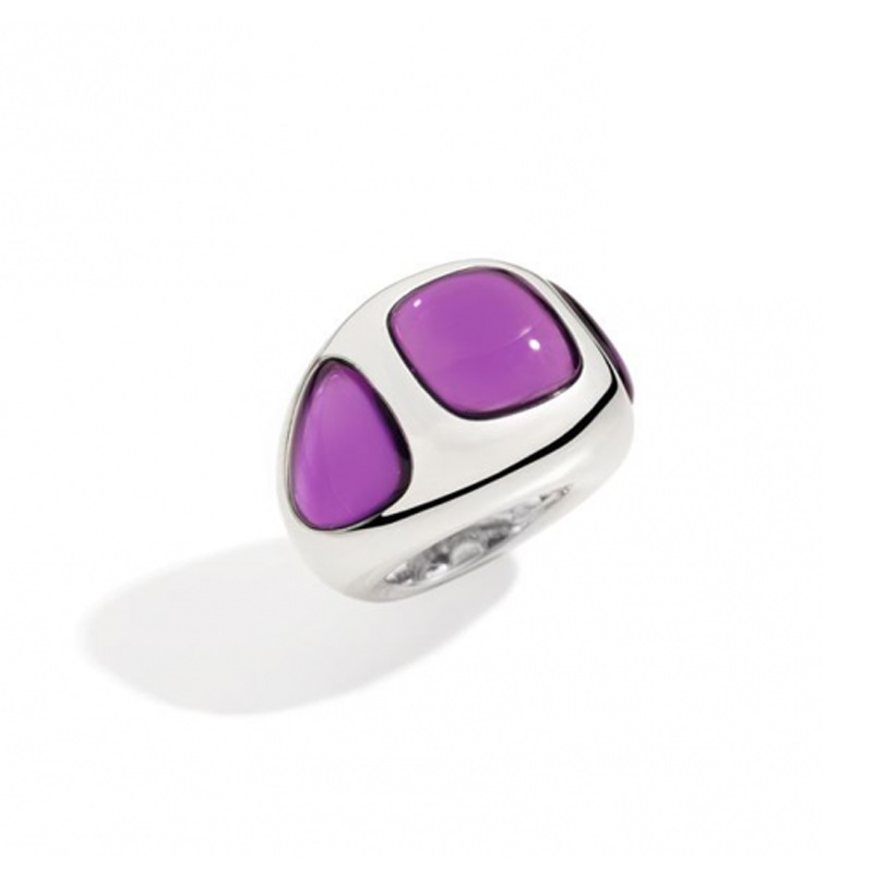 Anello in argento con cabochon quadro e triangolare in ametista sintetica idrotermale.