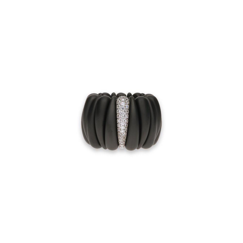 Anello in ceramica nera e oro bianco 1.40 gr con diamanti 0.45 ct