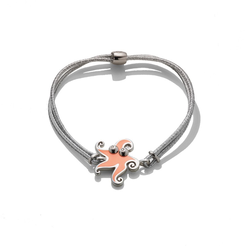 Bracciale piccolo Stella Marina in argento 925 e smalto color salmone, occhi con diamanti e cordino elastico nero della collezione Scugnizzi di Chantecler.
