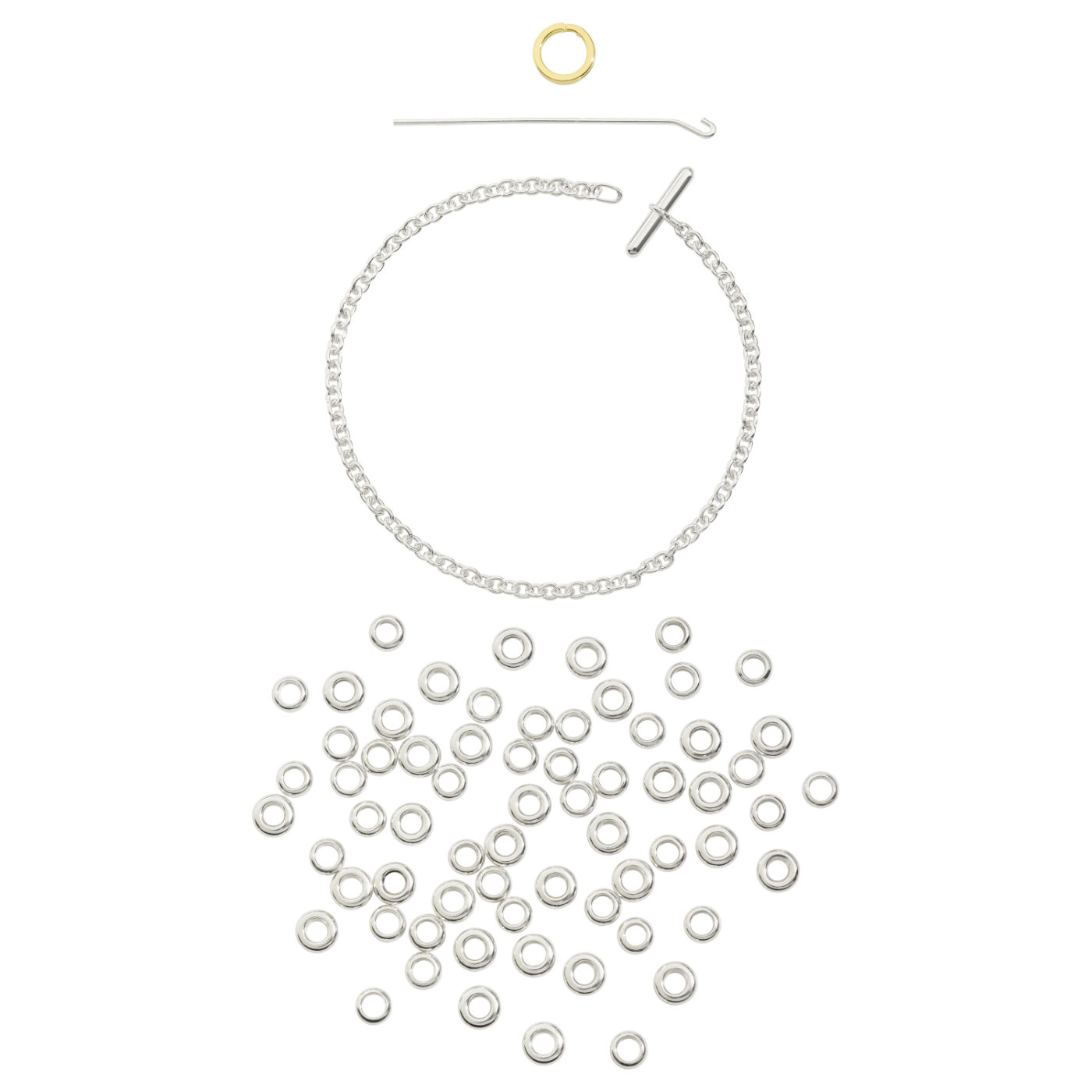 Bracciale rondelle in argento 925, catena in argento 925 con Anello brisè in oro giallo 18K. Ago in argento 925 incluso.