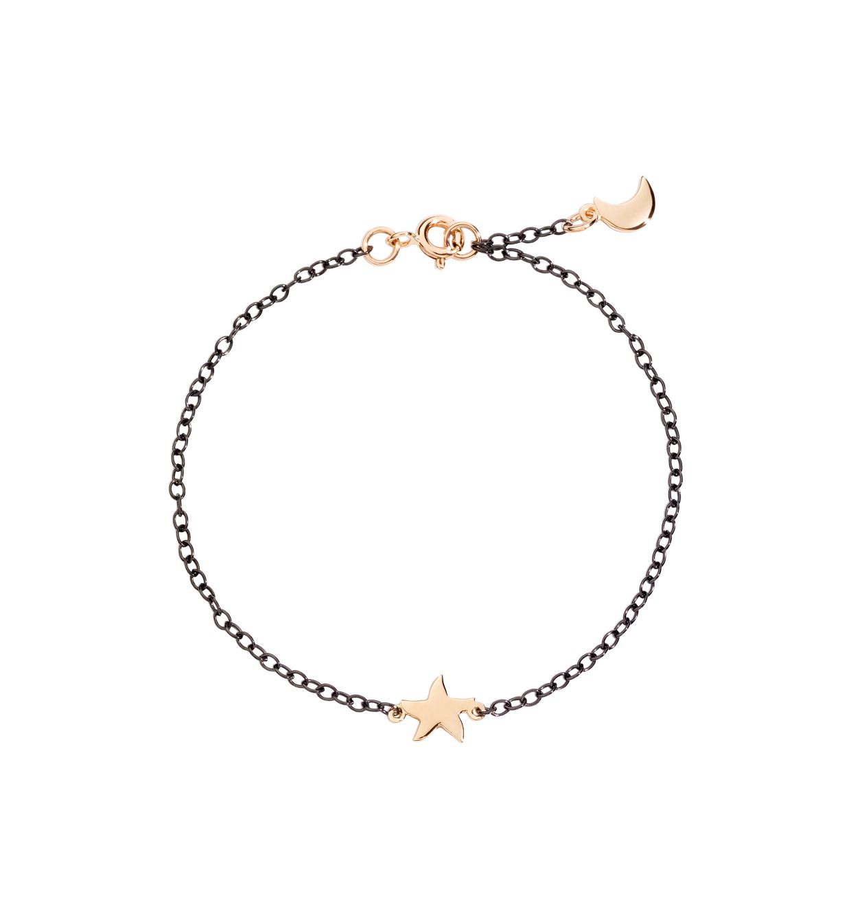 Bracciale in argento e PVD nero, stella in oro rosa 9k e luna in oro rosa 9k.