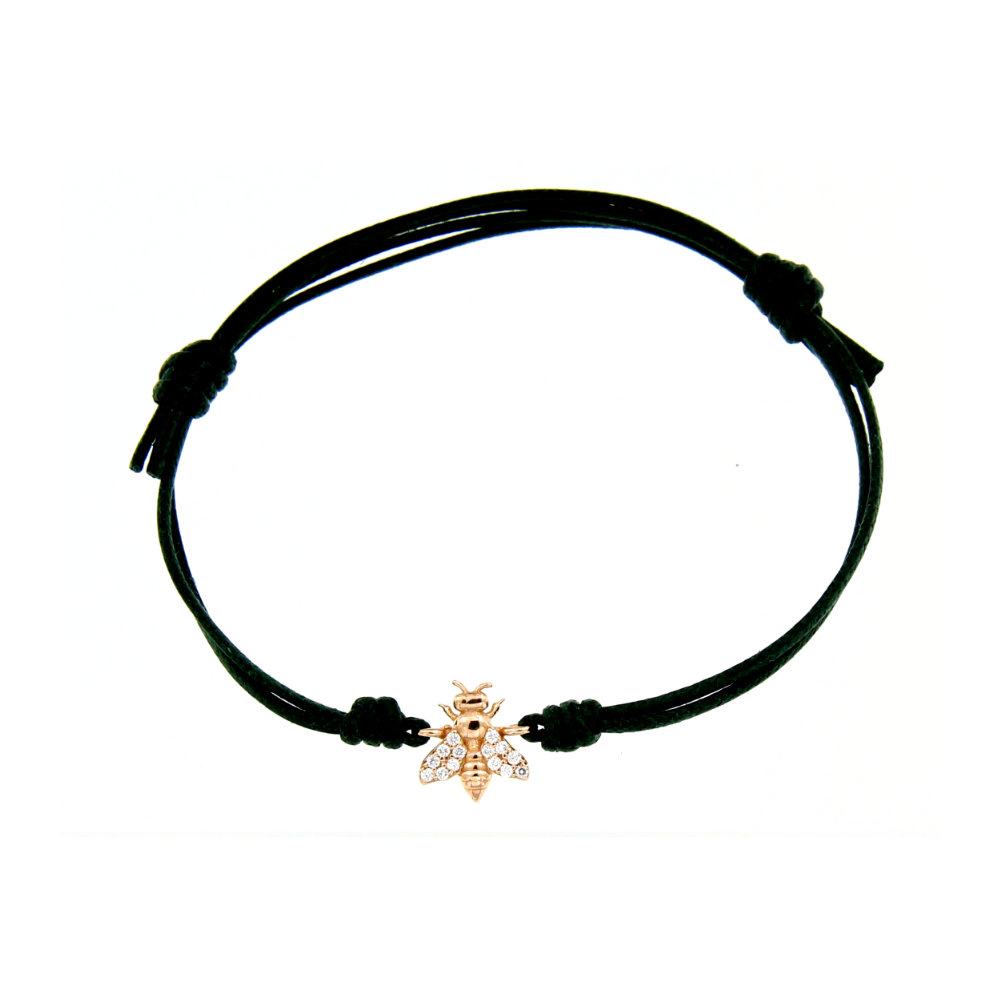 Bracciale con cordino e simbolo Ape in oro rosa e diamanti ct 0.065