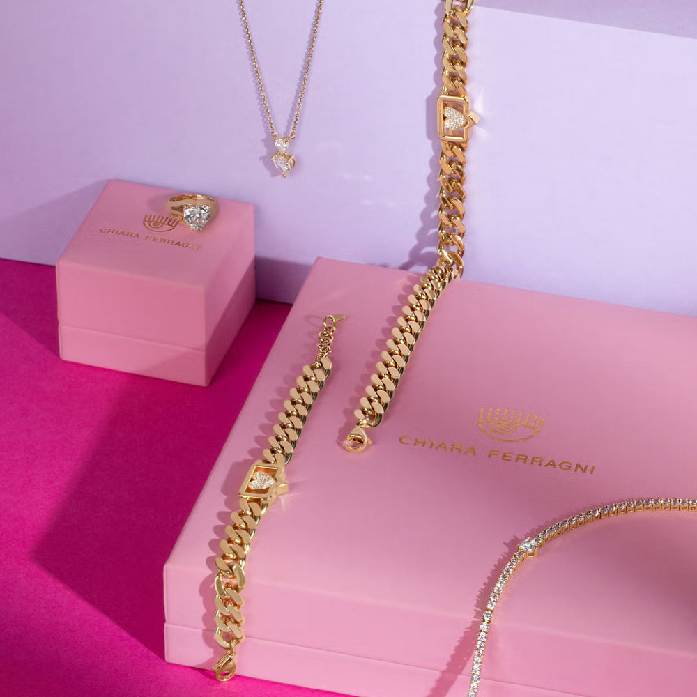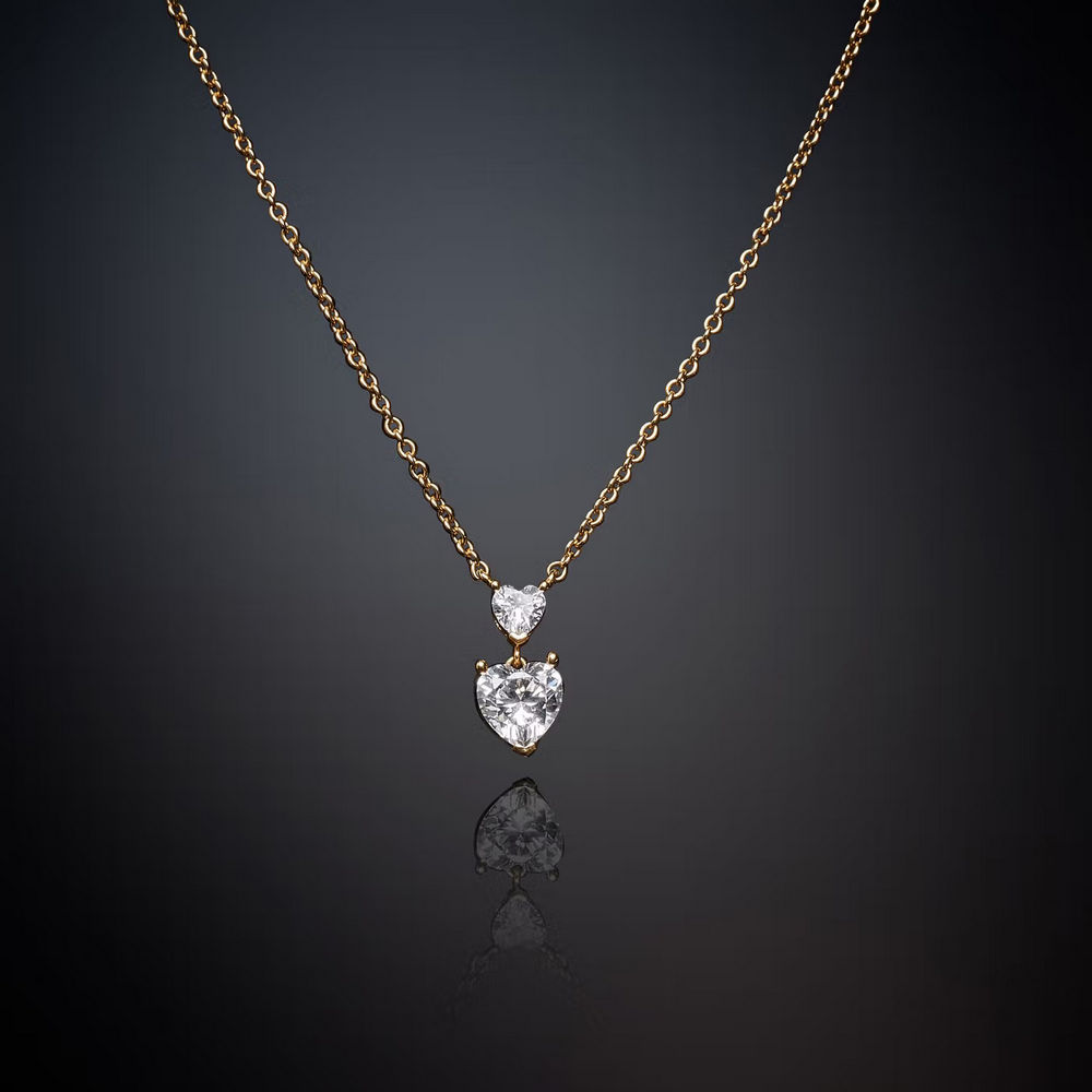 Collana da Donna, collezione Diamond Heart. Collana con pendente placcata in oro giallo 18 Kt e due zirconi taglio cuore bianchi nella parte centrale