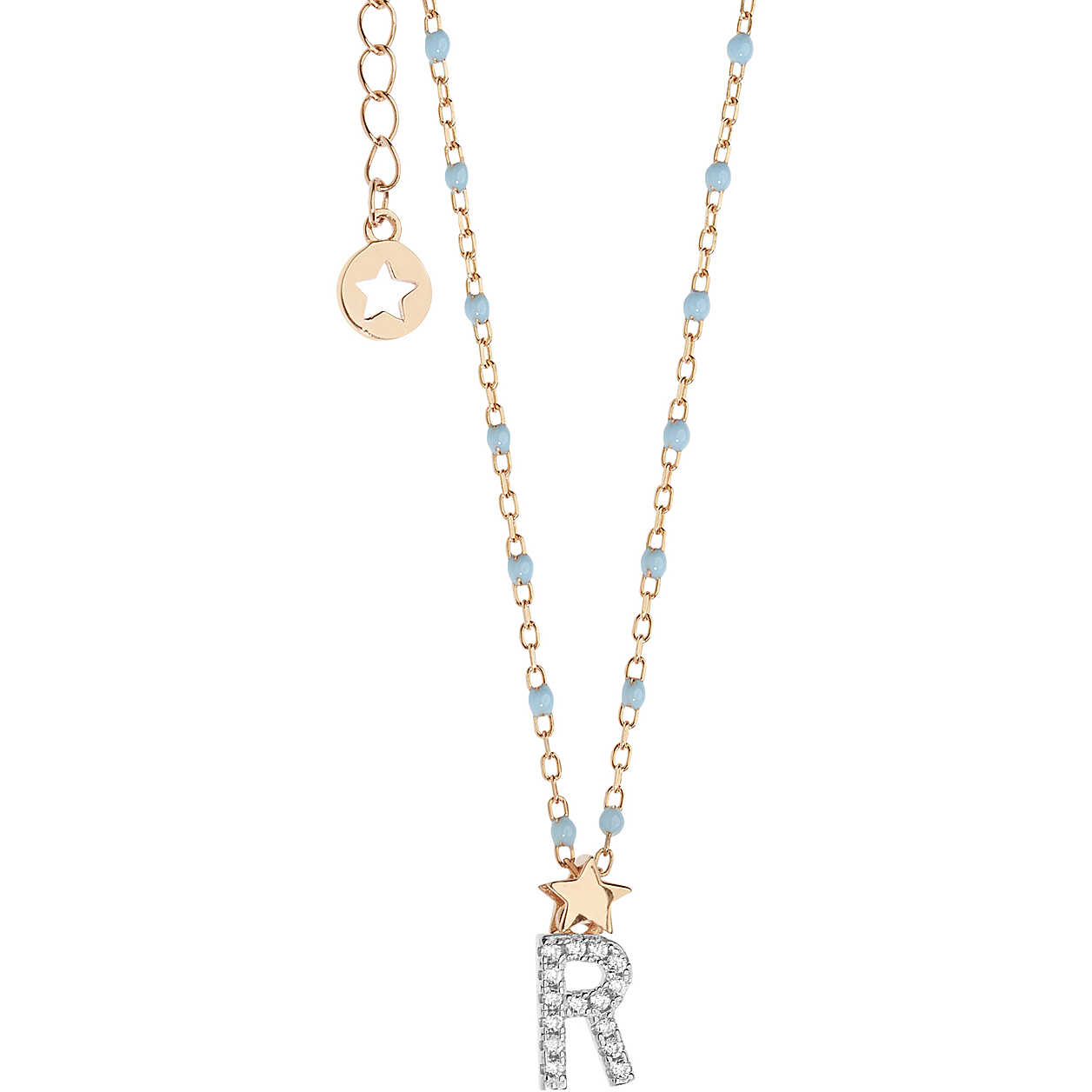 Collana da donna comete realizzata in argento 925% placcato oro rosa e sfere con smalto azzurro.