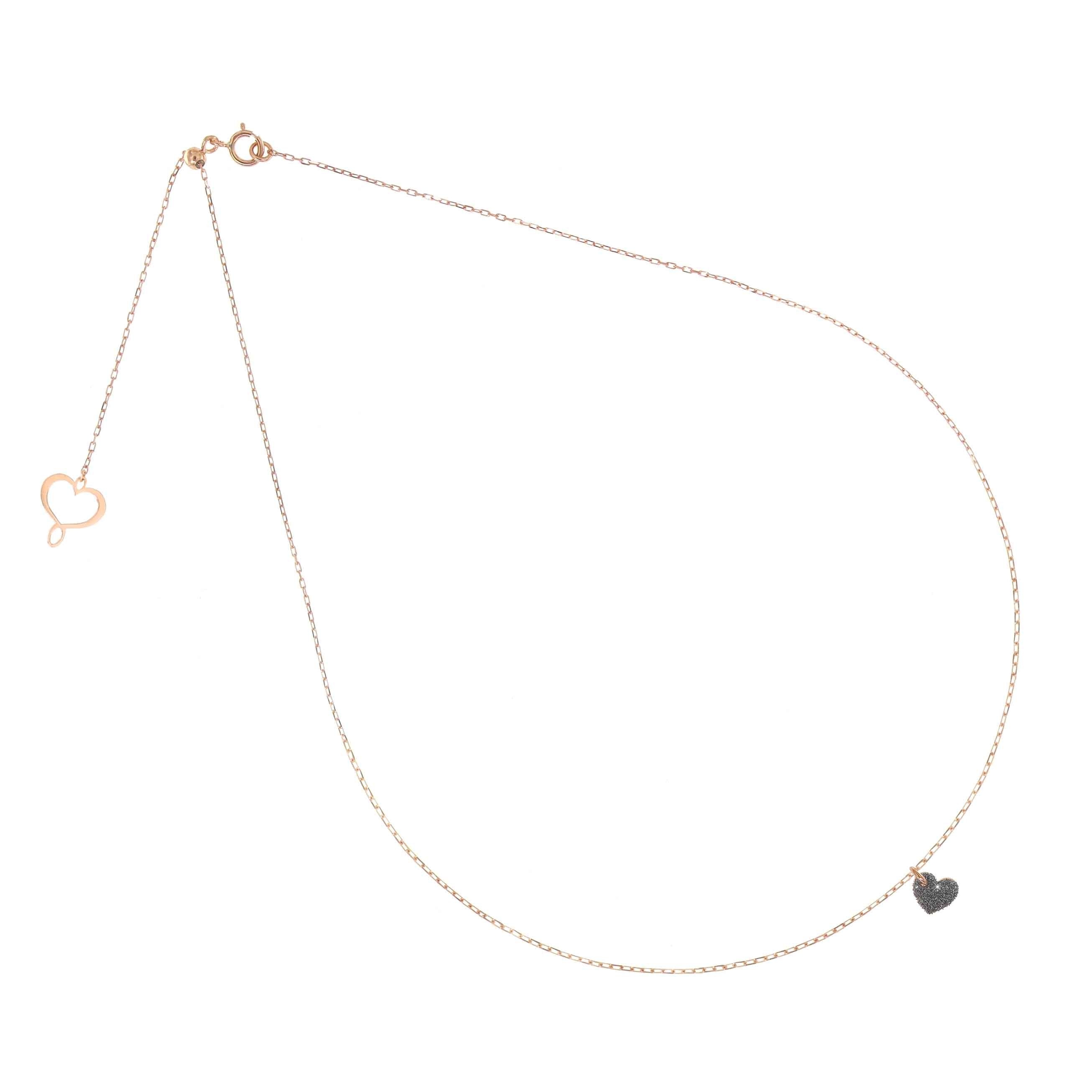 Girocollo Aurum realizzato in oro rosa 18 carati con cuore pendente in lastra con polvere di diamanti cromo. Il cuore misura 10 mm x 8 mm. La circonferenza può essere regolata grazie alla sfera scorrevole fino ad un massimo di 41 cm. Chiusura con anello a molla.