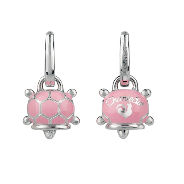 Monorecchini tartaruga modello micro in argento con smalto rosa e diamante bianco