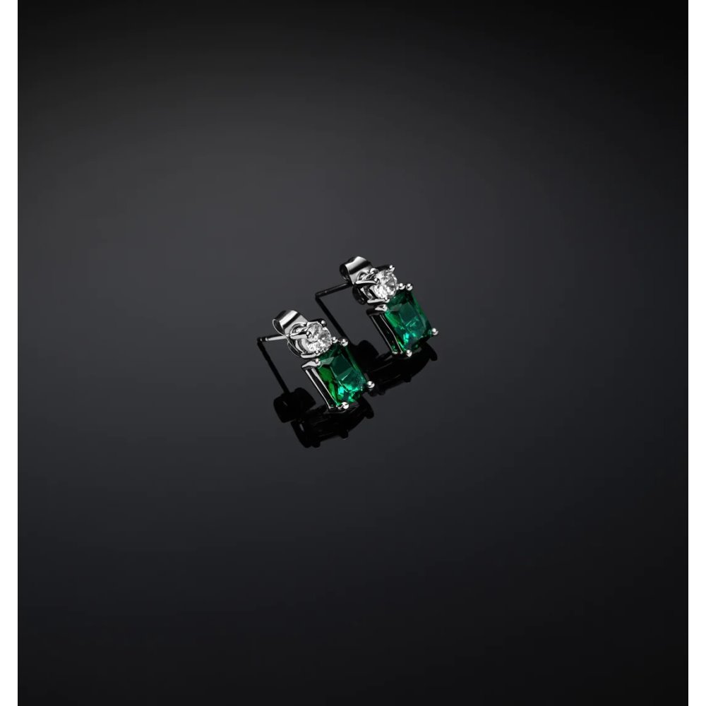 Orecchini placcati in argento con zirconi bianchi e verde smeraldo.