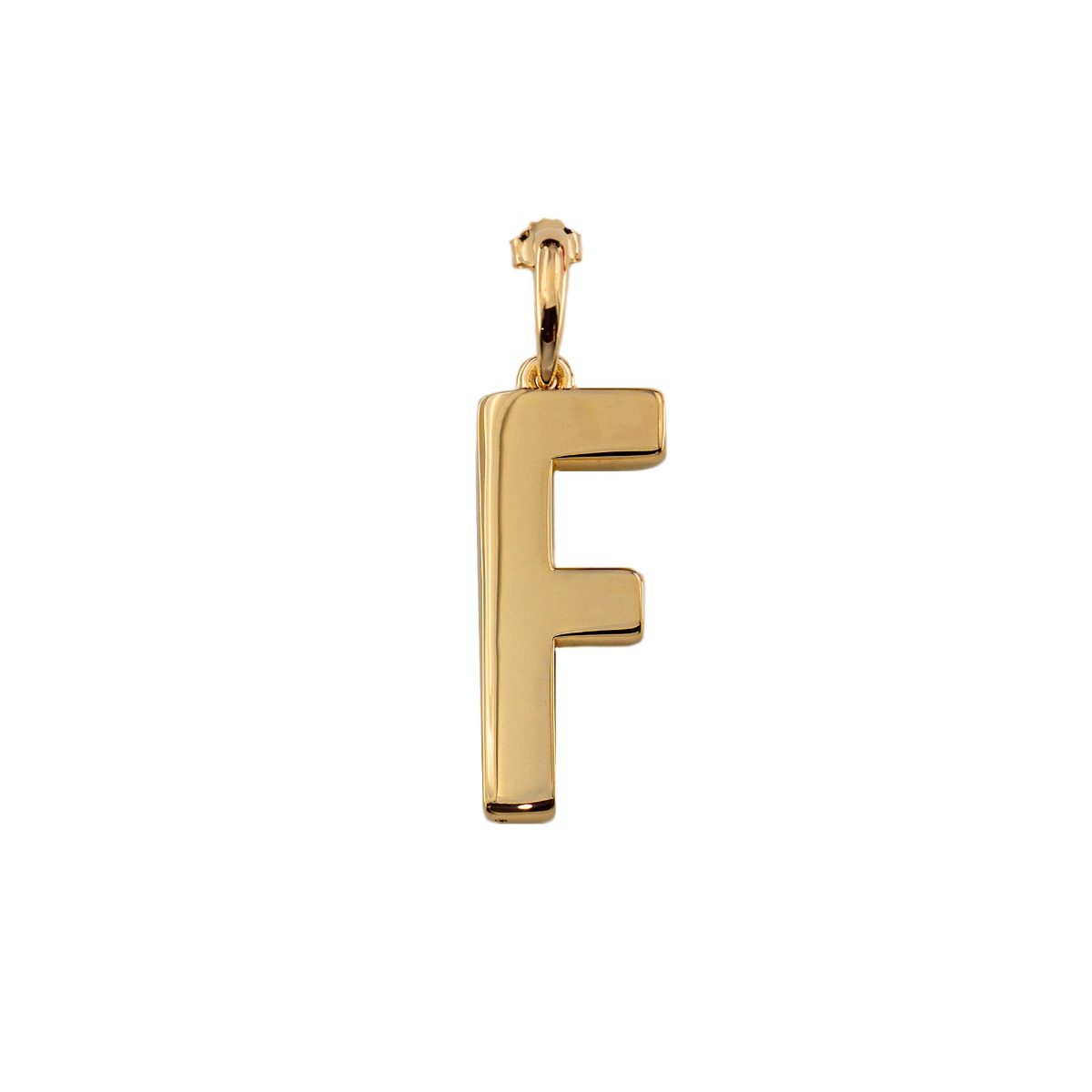 Orecchini a cerchio in argento 925‰ con placcatura in oro giallo 18Kt composto da ciondolo con la lettera F.