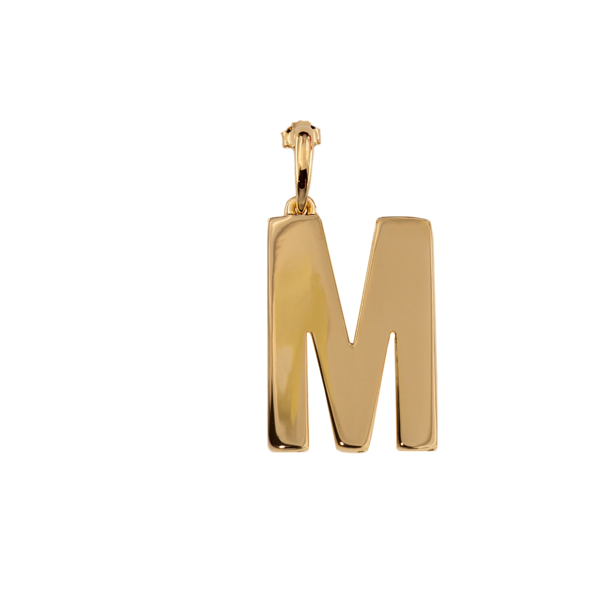 Orecchini a cerchio in argento 925‰ con placcatura in oro giallo 18Kt composto da ciondolo con la lettera M.