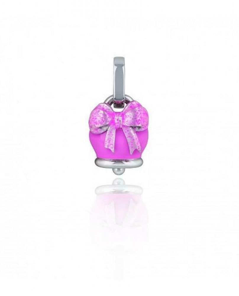 Ciondolo Chantecler Campanella micro con fiocco in argento smalto rosa e rosa glitter
