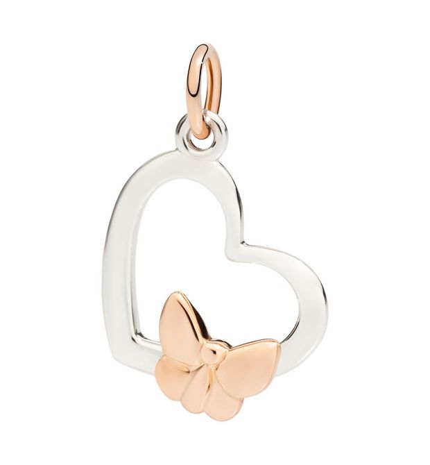 Ciondolo Silhoette in Oro Bianco 9 kt con Farfalla 3D in Oro Rosa 9 kt.