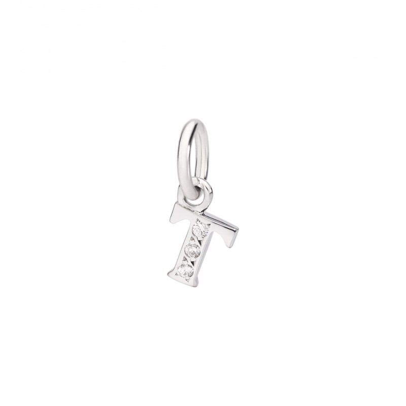 Ciondolo lettera T in oro bianco 18 kt. e 3 diamanti bianchi 0.025 kt.