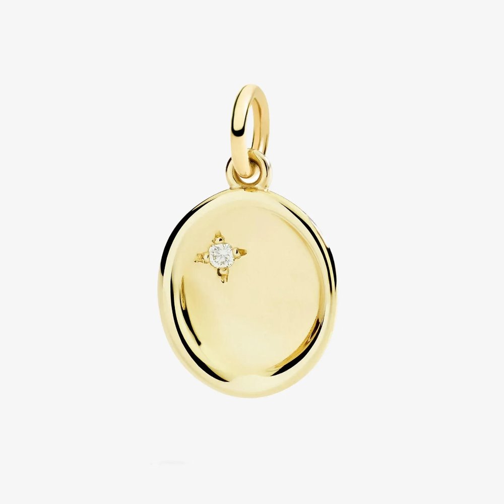 Ciondolo sigillo in oro giallo 9K con 1 diamante bianco (ct 0,02).