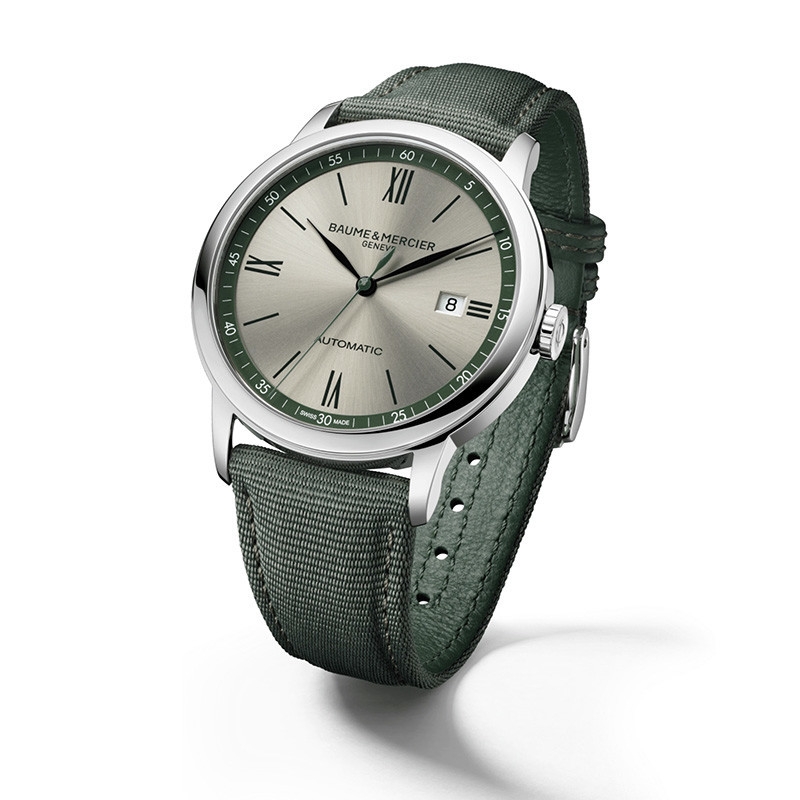 Il classima 10696 offre un look casual grazie al suo quadrante color argento caldo con finitura satinata soleil e flangia verde.