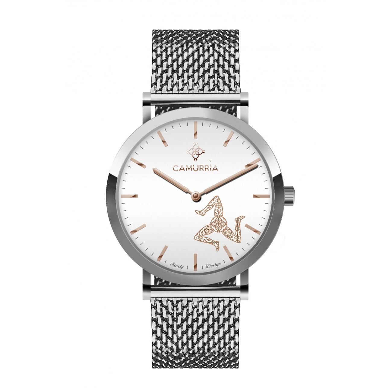 A Trinacria, della collezione 'A Tradizione, presenta l'orologio Milano con cassa e cinturino in acciaio. La stampa della Trinacria, tipica siciliana, è riportata sull'orologio dal design unico ed originale.