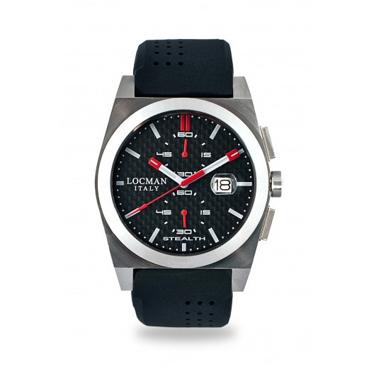 Orologio Uomo Locman STEALTH 020200CBFRD1GOK Cronografo al Quarzo, Cassa in Acciaio e Titanio, Quadrante Nero e Cinturino in Silicone Nero